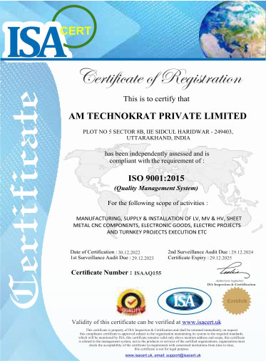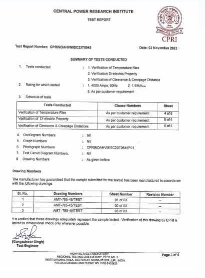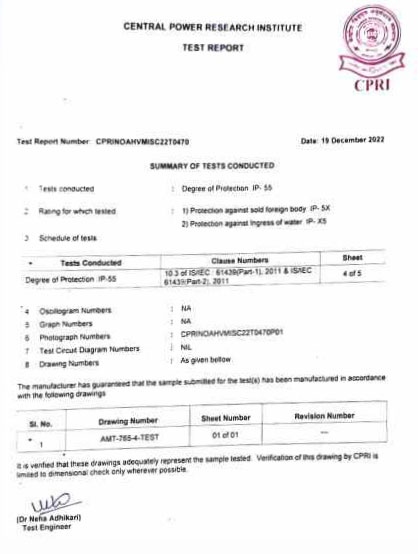 We at AM Technokrat Pvt Ltd has successfully passed 5 rigrous Type Tests at CPRI Laboratories also for LV Switchboards as: